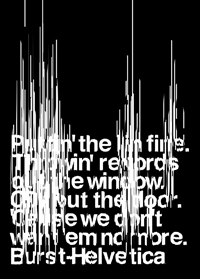 稲葉が開発した「バースト・ヘルベチカ」は、ヘルベチカ書体をベースにした“動く”タイポグラフィ。それぞれの文字に異なるモーションやスピードを与えることで、文字がランダムに集散を繰り返す。